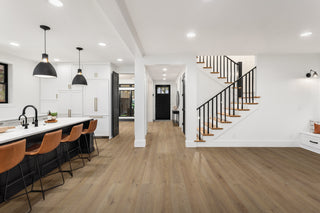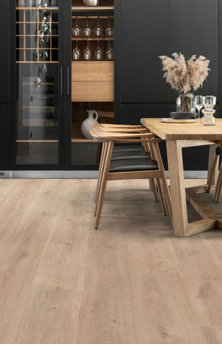 Sequoia® is thoughtfully designed to provide unparalleled resemblance to trendy white oak flooring. Its ultra-matte and textured surface is crafted using a newly developed proprietary innovation creating an authentic wood-like look & feel. The 24 unique 9-1/2"x 70" faces eliminate the appearance of patterns and further enhance resemblance to natural flooring. Sequoia flooring is protected with an advanced AC6 finish or wear-layer making it ultra durable and long lasting.